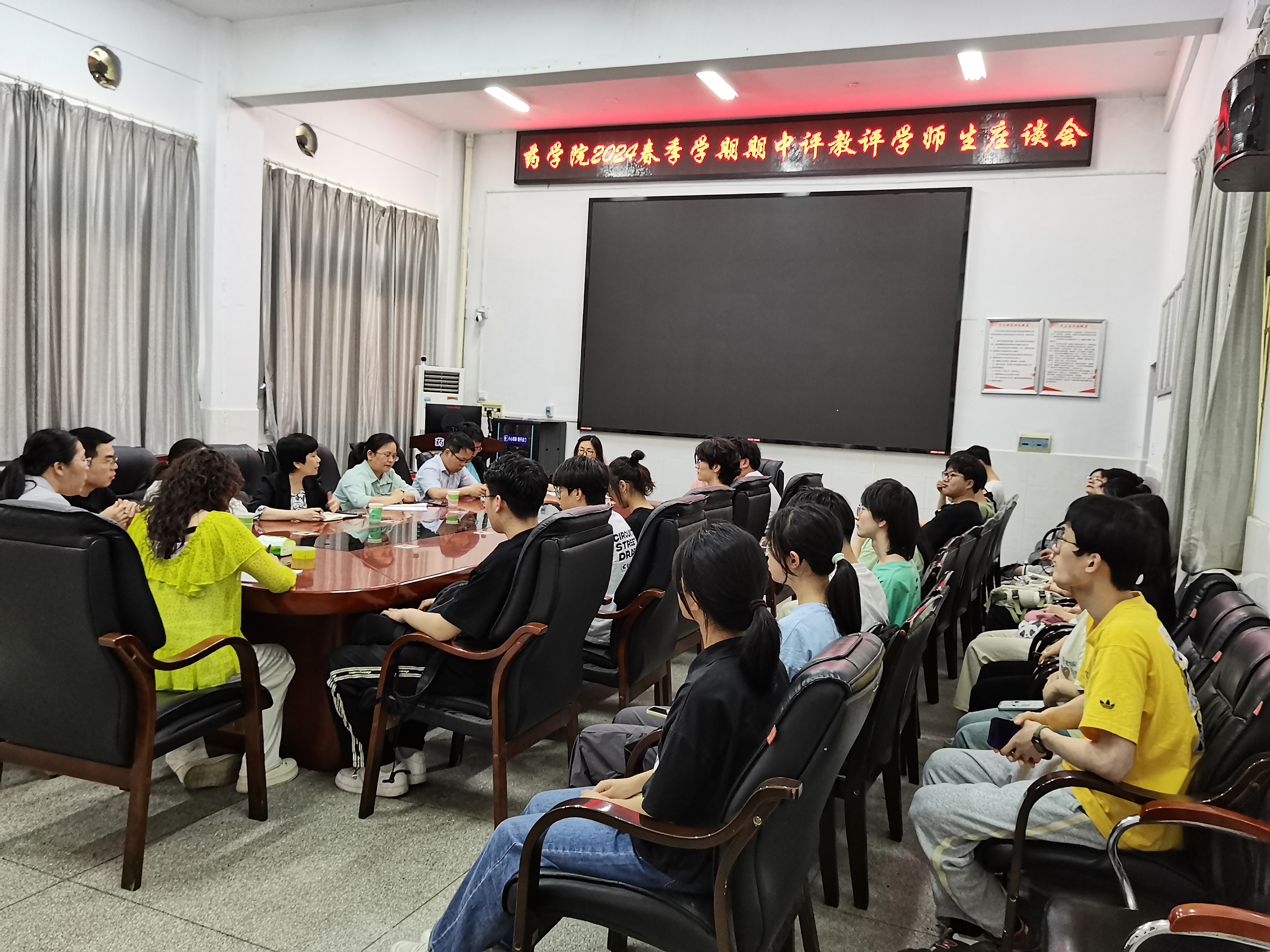 为了推动学院教风、学风建设,了解学生学习状态和教学需求,进一步提升教师的教学能力,全面推动本科教育教学高质量发展。我院于5月13日中午召开了2024年春季学期期中评教评学师生座谈会。学院主管教学工作易岚副院长、院督导、各教研室中心主任、教务办、学工办以及各班学生代表参加了本次座谈会,会议由易岚主持。