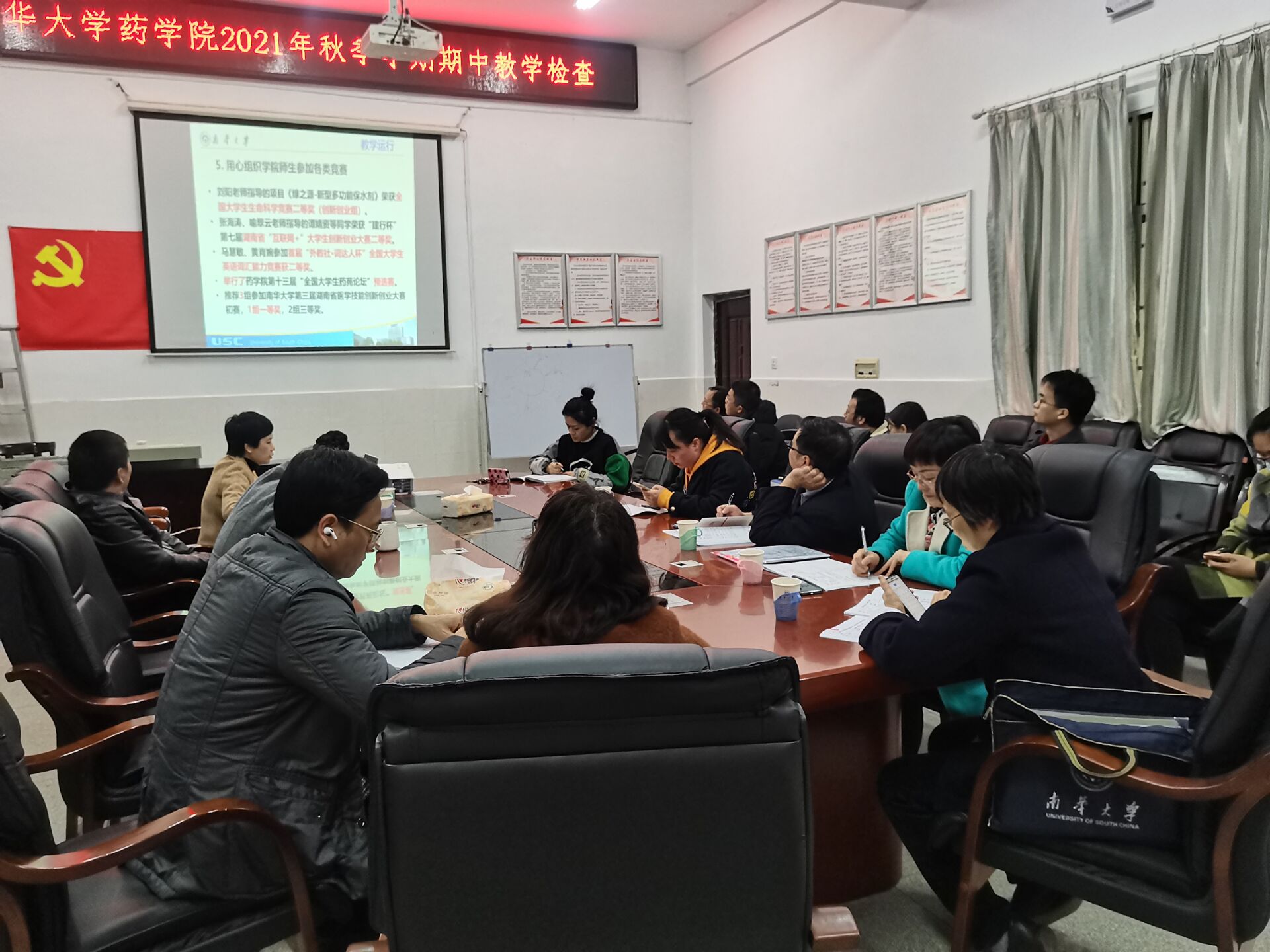 11月24日下午,学校教务部、校督导团、船山学院督导团一行来太阳成集团tyc33455cc开展期中教学检查。我院院长喻翠云老师 、党委书记袁中华老师、主管教学副院长易岚老师、教务办、各系室中心主任以及部分教师参加了检查会议。