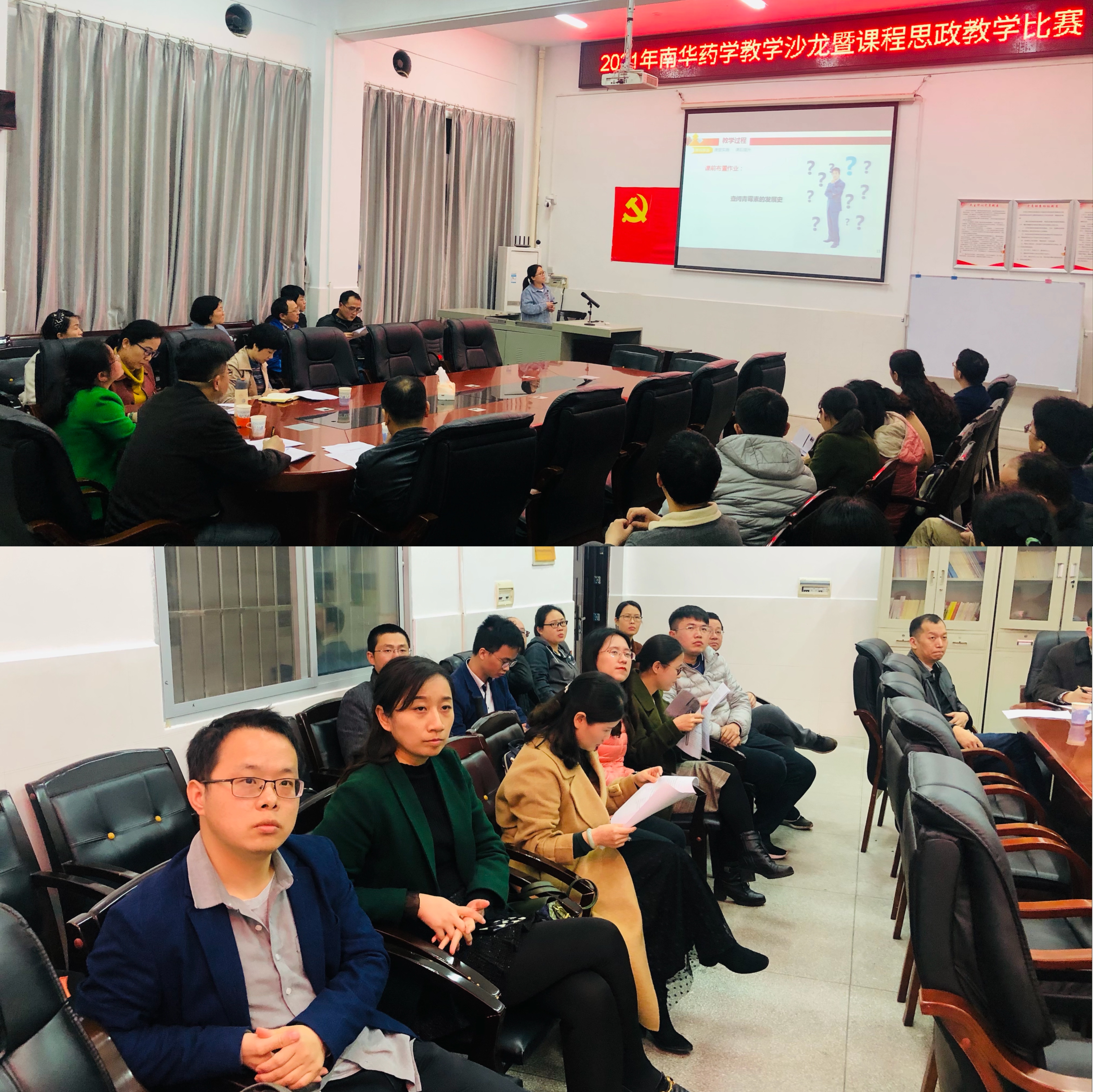 为贯彻落实中共中央办公厅、国务院办公厅《关于深化新时代学校思想政治理论课改革创新的若干意见》和《高等学校课程思政建设指导纲要》文件精神,进一步挖掘药学课程中蕴含的思政元素,大力推动以“课程思政”为目标的课堂教学改革,使专业课程与思想政治理论课同向而行,全面提升教师课程思政教学能力,我院于4月19日晚,在学院会议室举办了南华药学教学沙龙暨课程思政教学比赛。