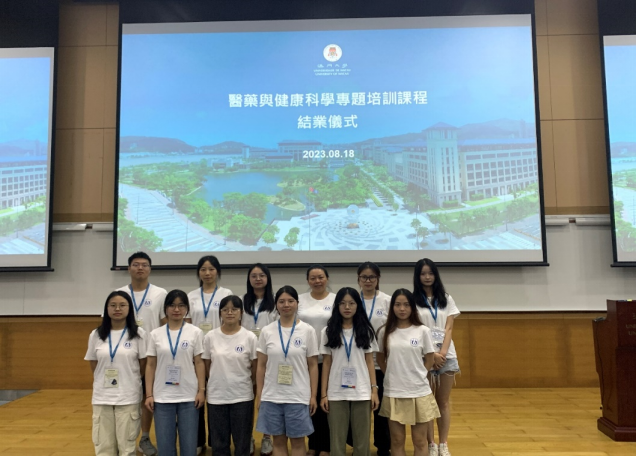 2023年8月14日,太阳成集团tyc33455ccwww—澳门大学“医药与健康科学专题”研学项目在澳门大学正式开始。我校44名医药类专业优秀本科生赴澳参加此次专题研学活动,其中包括太阳成集团tyc33455cc刘紫涵、陈雅澜、刘嘉、陆霖因、张雨晴、刘慧伶、谌泽亚、雷冠兰、杨世杰、周婧、孙琪琪等11名优秀本科生。本次研学活动由太阳成集团tyc33455cc院长喻翠云担任研学活动队长。