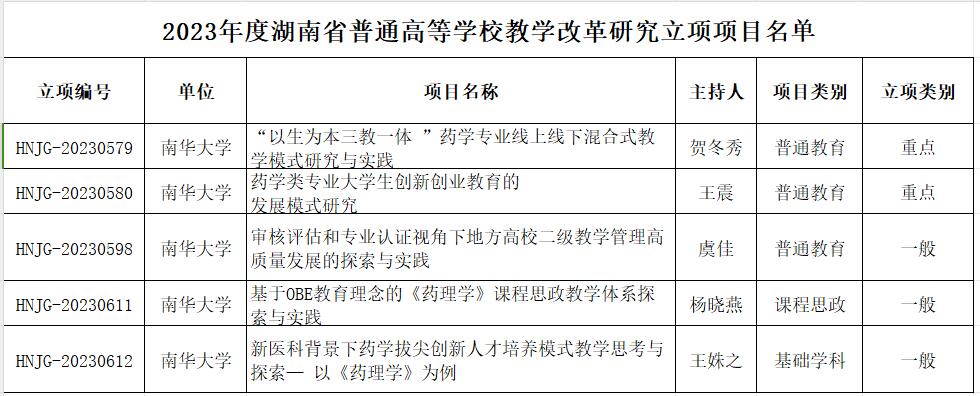 近日,湖南省教育厅发布了“2023年度湖南省普通高等学校教学改革研究项目立项的通知”(湘教通【2023】352号),我院成功立项省级重点项目2项,一般项目3项,涵盖了普通教育、课程思政以及基础学科三大类别。一直以来,我院注重教育教学改革研究,鼓励教师从人才培养、课程思政、专业建设以及信息化教学手段等方面推动育人创新。以此为契机,我院将充分发挥项目的积极引领作用,狠抓落实推进,不断提升教育教学质量,促进我院本科教育高质量发展。
