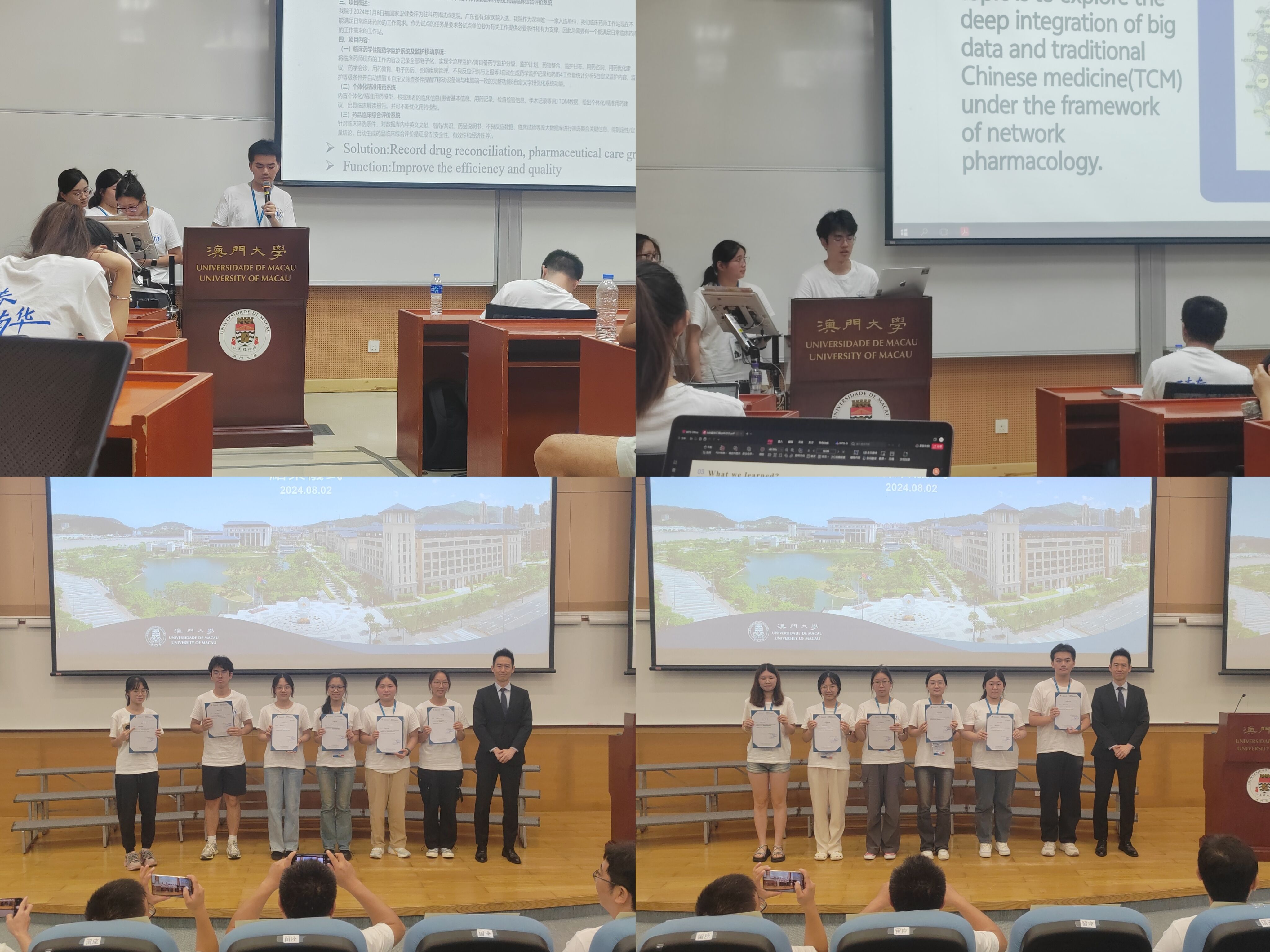 最后,研学团分为多个小组,围绕“Traditional Chinese Medicine""Cell Autophagy and Neurodegenerative Disease", "precision medicine”等主题进行了学习汇报。澳门大学教授们对同学们的汇报进行了点评,高度赞赏了学生们勤学好问的求学精神。蔡星宇小组获得获得澳门大学持续进修中心Matthew签发的推荐信!愿太阳成集团tyc33455cc学生能在接下来的学习之旅再创佳绩。