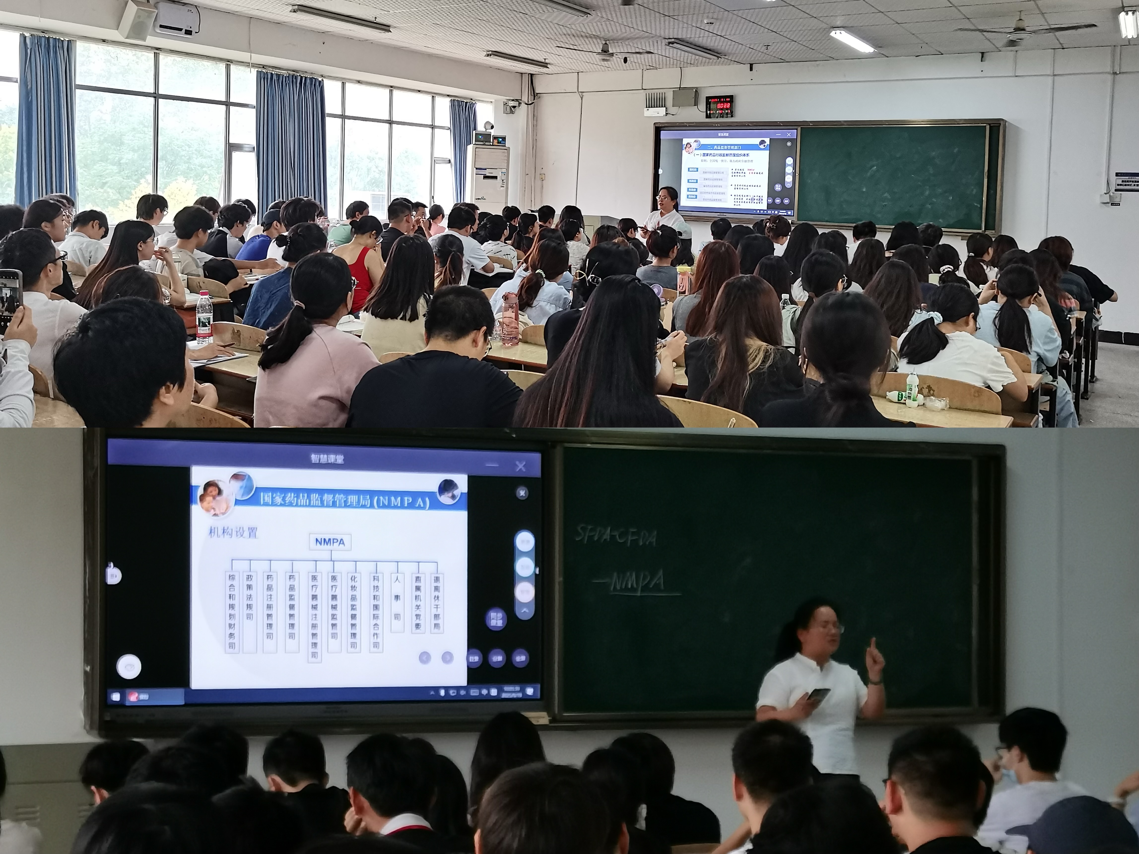 在课堂上,贺冬秀老师以我国药品行政监督组织体系为主线,采用线上线下混合式教学模式,融合启发式提问与案例分析方法,引导学生逐步深入理解我国药品监管体系的组织架构。课程内容涵盖我国药品行政体系的整体构成、国家药品监督管理局(NMPA)的内设机构与职能,以及省级与省级以下药品监管组织的体系设置与职责分工。通过系统讲解,学生不仅掌握了药事组织相关核心知识,也为后续学习药品注册、生产、流通等全生命周期监管内容奠定了扎实基础。