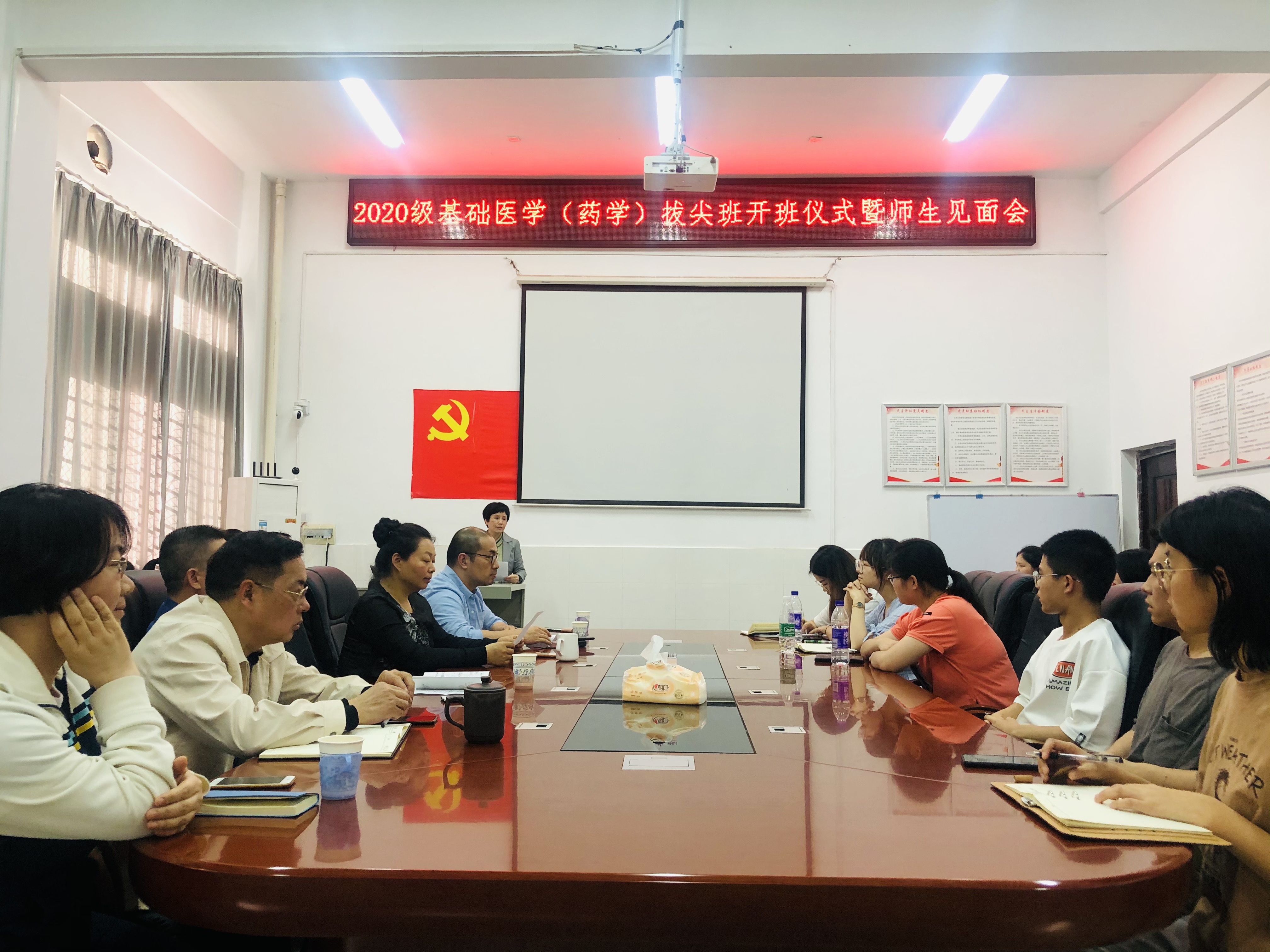 4月30日下午,太阳成集团tyc33455cc在新二教B栋101会议室举行了首届基础医学(药学)拔尖班开班仪式暨师生见面会。教务部戴剑勇副部长、太阳成集团tyc33455cc院长喻翠云教授,太阳成集团tyc33455cc副院长易岚教授,中组部青年千人计划学者魏华教授,四川省千人计划学者陈渝萍教授等拔尖班导师,年级辅导员、班主任、教务办老师以及拔尖班全体学生出席了会议。会议由太阳成集团tyc33455cc易岚副院长主持。