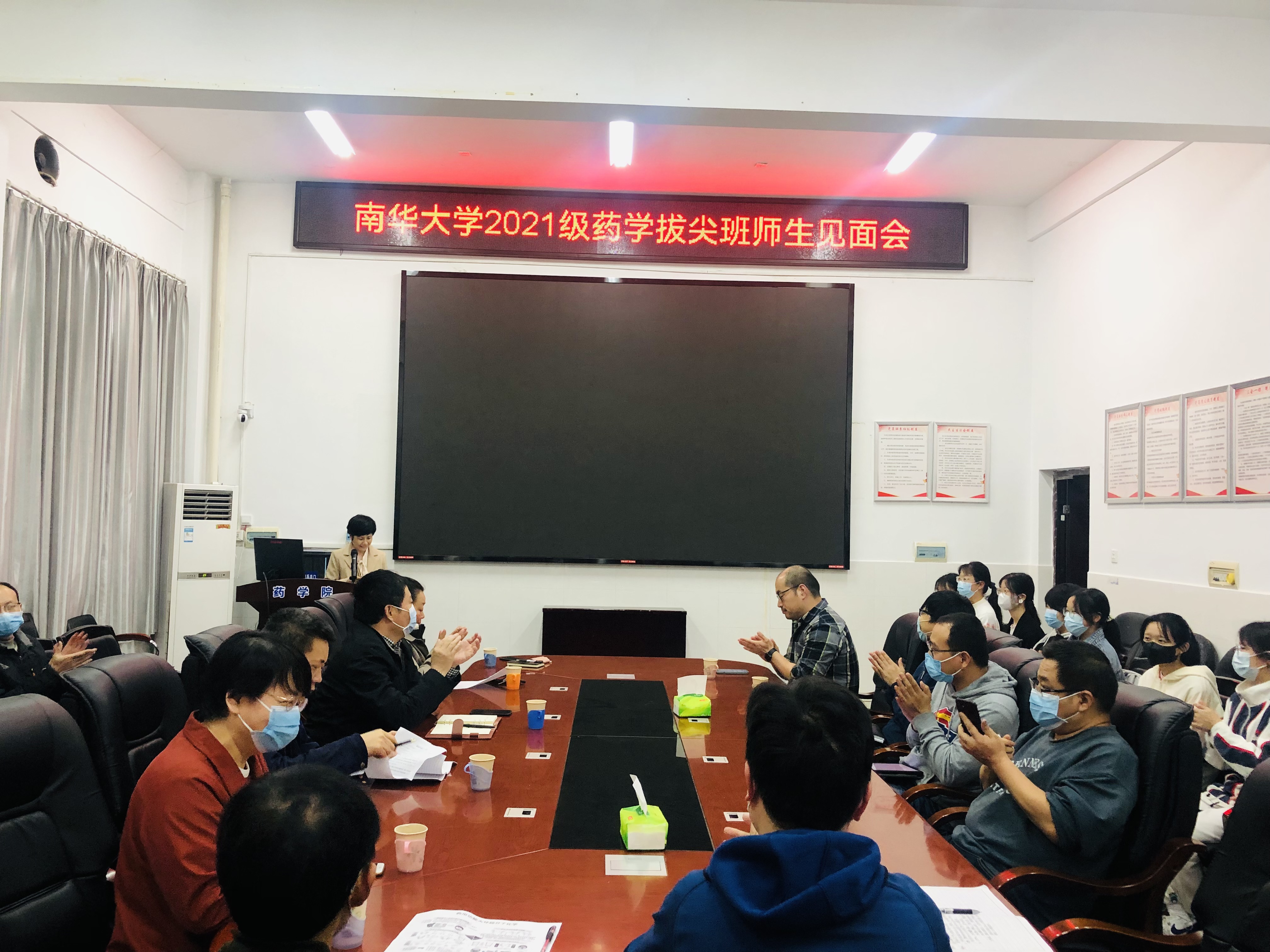 4月15日下午,太阳成集团tyc33455cc在新二教B栋101会议室举行了2021级基础医学(药学)拔尖班师生见面会。药学院院长喻翠云教授、党委书记袁中华教授、副院长易岚教授、副院长王力立教授、高层次人才魏华教授、陈渝萍教授等拔尖班导师,班主任、教务办老师以及拔尖班全体学生参加了会议。教务部戴剑勇副部长应邀出席了会议,会议由易岚副院长主持。