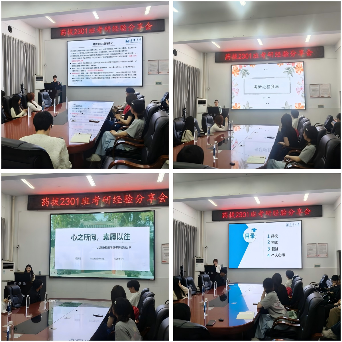 四位学长学姐围绕择校、初试、复试全流程,从院校信息、备考规划、经验建议等方面展开全方位讲解,干货满满,现场掌声不断。互动问答环节中,同学们围绕复习节奏、难点突破、心态调整等问题积极提问,嘉宾们结合自身经历耐心解答,进一步理清同学们备考思路、缓解备考焦虑。