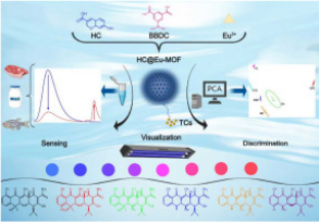 四环素类抗生素应用广泛,其药物残留严重影响环境安全和公众健康。因此,四环素类抗生素检测和鉴别对于食品安全和环境监测具有重要意义。该团队基于香豆素成功构建了一种用于四环素类抗生素检测和类似物区分的MOF材料,该材料可以100%准确度区分包括氯霉素、土霉素、四环素、甲氧土霉素、多西环素和地美环素在内的六种重要四环素类似物,并可以通过智能手机辅助便携设备进行四环素类抗生素的可视化区分。该成果发表在Talanta(Talanta,2025,281, 126914)。