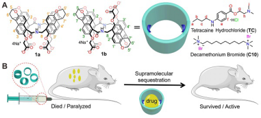 麻醉药物被广泛用于临床手术、术后疼痛管理以及治疗各种慢性疼痛症。然而,药物的过量和毒性常常导致严重不良事件。该团队利用大环主体对丁卡因和十烃季铵的高强度结合实现了丁卡因的解毒和十烃季铵麻醉逆转。该成果发表在Theranostics(Theranostics,2024,14, 5219-5234)。