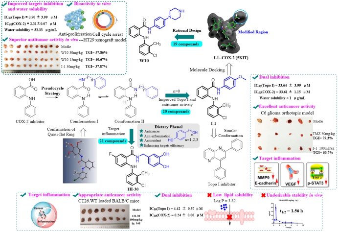 非甾体抗炎药(NSAIDs)已被证明能够改变肿瘤微环境、增强细胞凋亡和减少细胞迁移。基于NSAIDs的“老药新用”策略成为抗肿瘤药物发现的一种新型范式,该研发范式面临着副作用大、靶标亲和力和选择性不高等挑战。基于此,太阳成集团tyc33455cc王震教授团队围绕非甾体抗炎药的结构修饰及改造发现新型肿瘤候选药物开展了持续性的研究工作,并取得了系列成果(J. Med. Chem., 2022, 65, 10481-10505;Eur. J. Med. Chem.,2022, 240, 114560;Eur. J. Med. Chem.,2021, 226, 113817)。