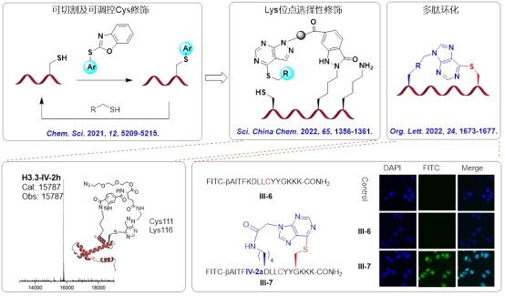多肽及蛋白质化学选择性修饰可简便有效的赋予其特定的功能,在探究蛋白质结构与功能、研究蛋白-蛋白相互作用、监测细胞内病理及生理学进程、抗体-药物偶联物制备等方面发挥着重要作用。因此,开发高效及高选择性的修饰方法具有重要意义。太阳成集团tyc33455cc王震教授团队李坚博士研究聚焦于多肽及蛋白质化学修饰与应用,目前已取得系列研究进展(Chem. Sci.2021,12, 5209-5215.,Sci. China Chem.2022,65, 1356-1361.,Org. Lett.2022,24, 1673-1677.)。