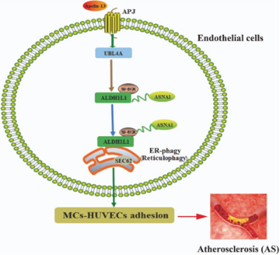 图1 SEC62依赖性ER-自噬在动脉粥样硬化中的作用机理研究显示(图1),Apelin-13通过激活APJ受体,剂量依赖性上调HUVECs中SEC62表达,促进SEC62与LC3共定位,触发内质网自噬。