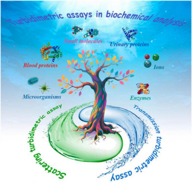 近日,课题组在分析化学领域顶级学术期刊《TrAC-Trends in Analytical Chemistry》(中科院1区,影响因子:11.8)上发表了题为“Advancements in the exploration and application of turbidimetric assays for biochemical analysis”的综述文章(Trends in Analytical Chemistry,191,2025,118333)。本文系统地综述用于散射比浊信号传感体系的发展和特点,包括新型试剂的开发、仪器性能的提升以及数据处理技术的优化,特别是该传感体系在生物标志物检测、微生物分析、药物效能测定、生物分子相互作用以及离子/分子浓度定量中的应用。