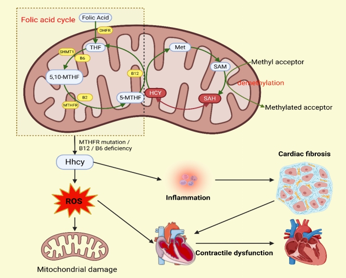 叶酸-同型半胱氨酸轴在人体代谢过程中扮演着关键角色,其平衡状态的打破,可能成为诱发心肌肥厚与心力衰竭的 “隐形推手”。从分子机制来看,当体内叶酸缺乏时,同型半胱氨酸的代谢过程会受阻,导致其在血液中蓄积,形成高同型半胱氨酸血症。这种异常状态会通过多种途径对心脏产生危害:一方面,高同型半胱氨酸可激活氧化应激反应,大量产生的活性氧自由基会损伤心肌细胞的结构与功能,破坏心肌细胞膜的完整性,进而引发心肌细胞凋亡;另一方面,它还能调控相关信号通路,如PI3K/Akt、MAPK 等,这些通路的异常激活或抑制,会干扰心肌细胞的正常增殖与分化,促使心肌细胞肥大,逐渐发展为心肌肥厚。