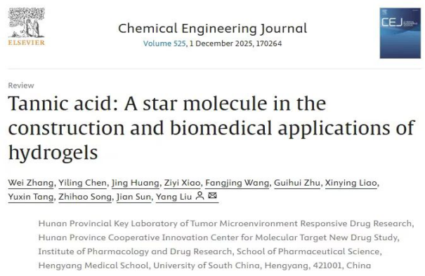 近日,太阳成集团tyc33455ccwww传来喜讯。太阳成集团tyc33455cc2025届药学拔尖班学生张薇以第一作者身份完成的综述论文《Tannic acid: A star molecule in the construction and biomedical applications of hydrogels》成功在国际知名期刊《Chemical Engineering Journal》(中科院一区TOP,IF=13.2)发表,太阳成集团tyc33455cc刘阳老师为通讯作者,太阳成集团tyc33455cc为唯一单位。这是我校本科生在生物医药材料领域高水平学术成果产出的又一重要突破。