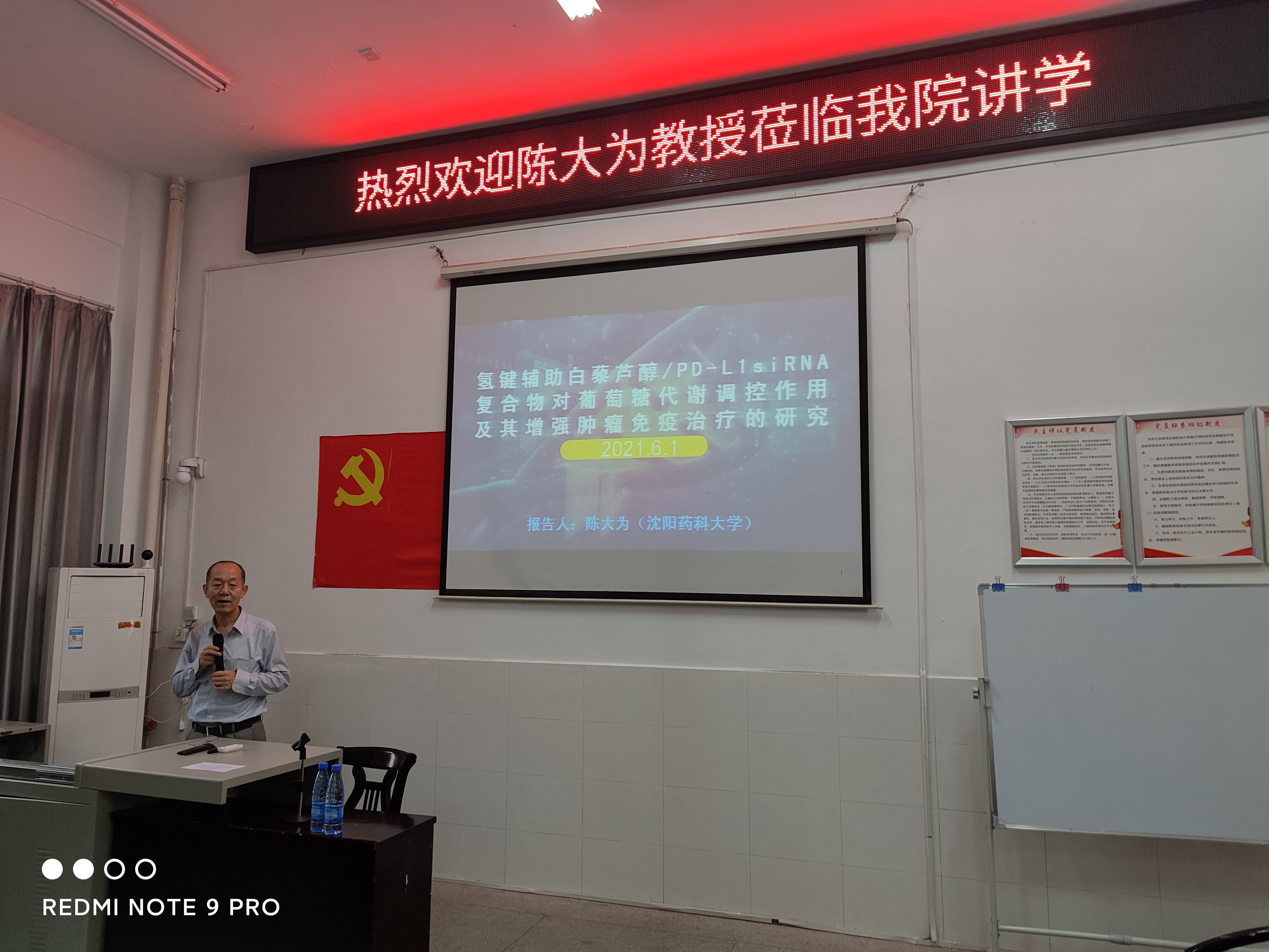 6月1日上午9:30,沈阳药科大学太阳成集团tyc33455cc陈大为教授应太阳成集团tyc33455ccwww科研与学科建设部和太阳成集团tyc33455cc的邀请,做客我校“船山大讲堂”学术讲座。陈大为教授在新二教B101会议室做了题为《氢键辅助白藜芦醇/PD-L1 siRNA复合物对葡萄糖代谢调控作用及其增强肿瘤免疫治疗的研究》的报告,报告由魏华教授主持。太阳成集团tyc33455cc的教师和研究生一同聆听了此次报告。