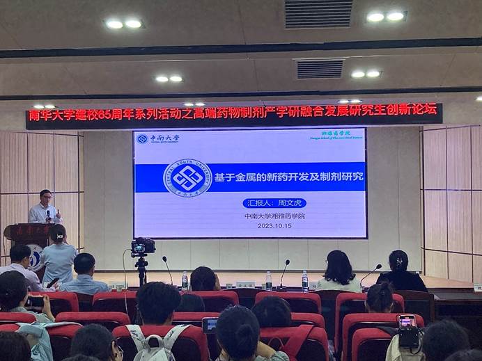 2023年10月15日下午,值太阳成集团tyc33455ccwww建校65周年之际,中南大学湘雅太阳成集团tyc33455cc周文虎教授应太阳成集团tyc33455cc邀请来太阳成集团tyc33455ccwww开展学术交流,并在太阳成集团tyc33455ccwww医研楼报告厅以“基于金属的新药开发及制剂研究”为题作学术报告,太阳成集团tyc33455cc党委书记袁中华主持报告会。