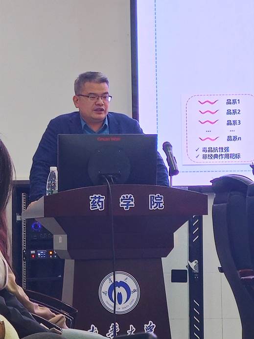 首先,王晓辉研究员从毒品成瘾机制的研究入手,探讨了全球毒品的形势以及毒品对于人类的危害,从毒品成瘾机制上,引导我们要正确应用科学技术去寻求创新型戒毒药物的研发,他鼓励研究生提高探索未知领域的能力,并对学生培养和学生的发展做出了明确的规划与安排。王晓辉研究员在精神活性物质的化学生物学和创新药物等方面有着丰富的研究经验。鼓励我们对于创新戒毒药物的研究开发,在新时代的发展下,创新型药物研究是确保未来医疗进步的关键一环,对于医学、患者和整个社会都具有极其重要的意义。