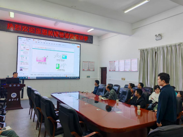 报告会上,张恩教授介绍了如何基于阳离子和两亲性的结构特性,设计并合成了一些具有良好活性的小分子阳离子抗菌肽模拟物(AMPs)的相关成果。随后,张恩教授与太阳成集团tyc33455ccwww参会师生进行了深入的讨论交流,对老师和同学提出的问题一一作了解答。