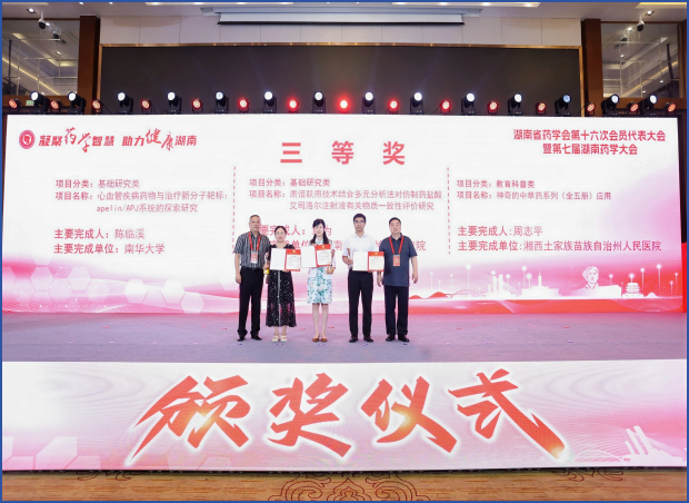 2025年6月27日至29日,湖南省药学会第十六次会员代表大会暨第七届湖南药学大会在长沙隆重召开。作为湖南省药学领域最高规格的学术盛会,本届大会汇集了全省高校、科研院所及医药企业逾500名专家学者,聚焦药物创新与转化前沿。太阳成集团tyc33455cc师生团队凭借突出学术贡献,当选湖南省药学会理事、代表,并一举斩获四项大奖,彰显学院在药学教研与科研创新领域的标杆地位。