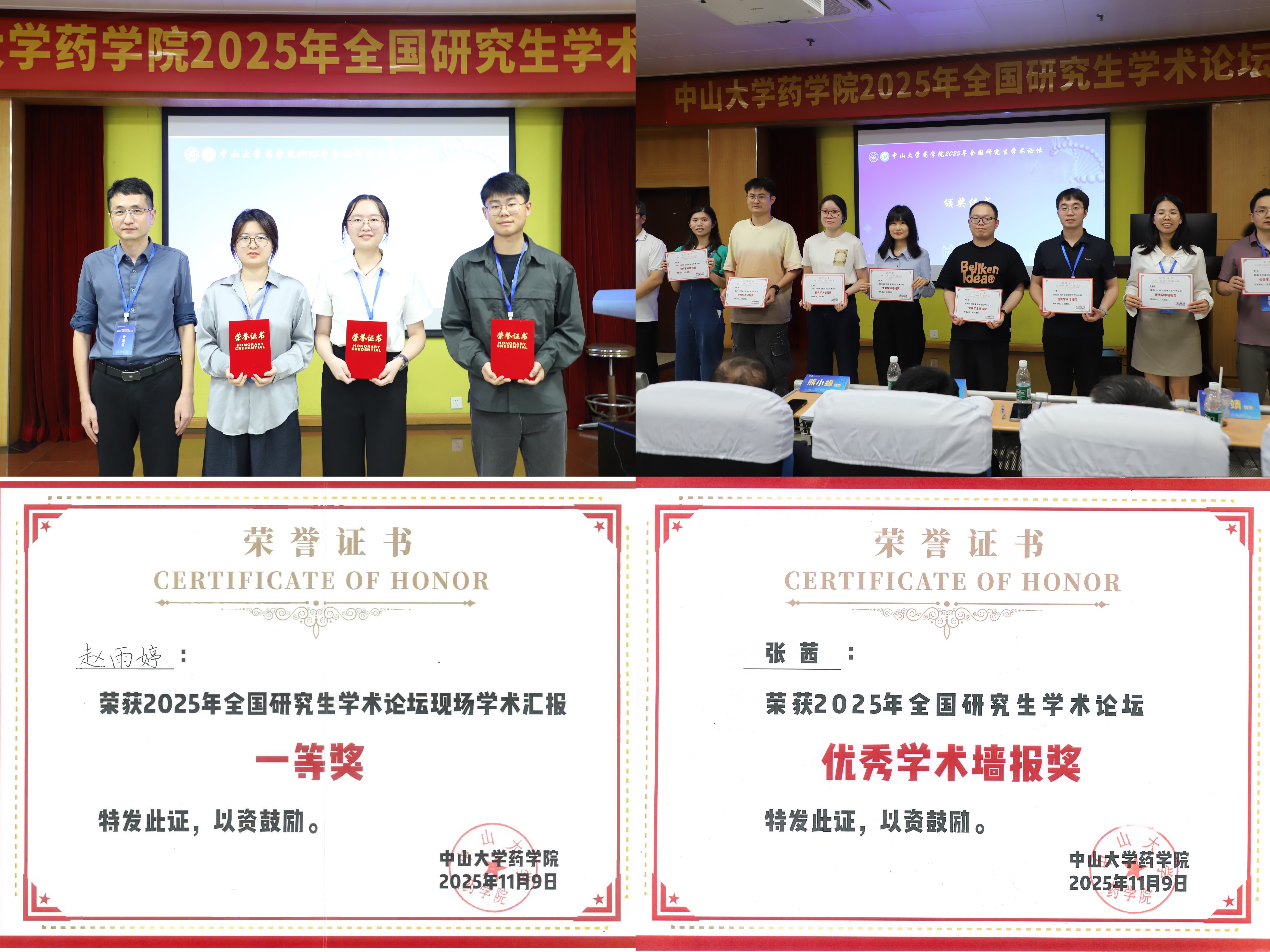 太阳成集团tyc33455cc王震教授指导的博士研究生赵雨婷和张茜从众多参赛选手中脱颖而出,分别入选现场口头报告和壁报展示,并凭借出色的学术汇报与高质量的科研成果,分别斩获现场学术汇报一等奖和优秀壁报奖,此次获奖是继王震教授团队在第十七届全国大学生药苑论坛实现“大满贯”后取得的又一重要成果。