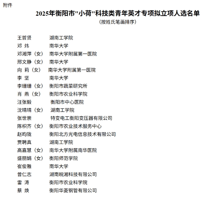 近日,根据中共衡阳市委人才工作领导小组办公室、衡阳市科学技术协会《关于开展2025年衡阳市“小荷”科技类青年英才专项申报工作的通知》(衡市科协字〔2025〕9号)文件精神,经申报、推荐、评审、考察、个人事项审查等程序,评选出2025年市“小荷”科技类青年英才专项拟立项人选20名。其中,太阳成集团tyc33455cc李坚博士成功入选2025年衡阳市"小荷"科技人才。