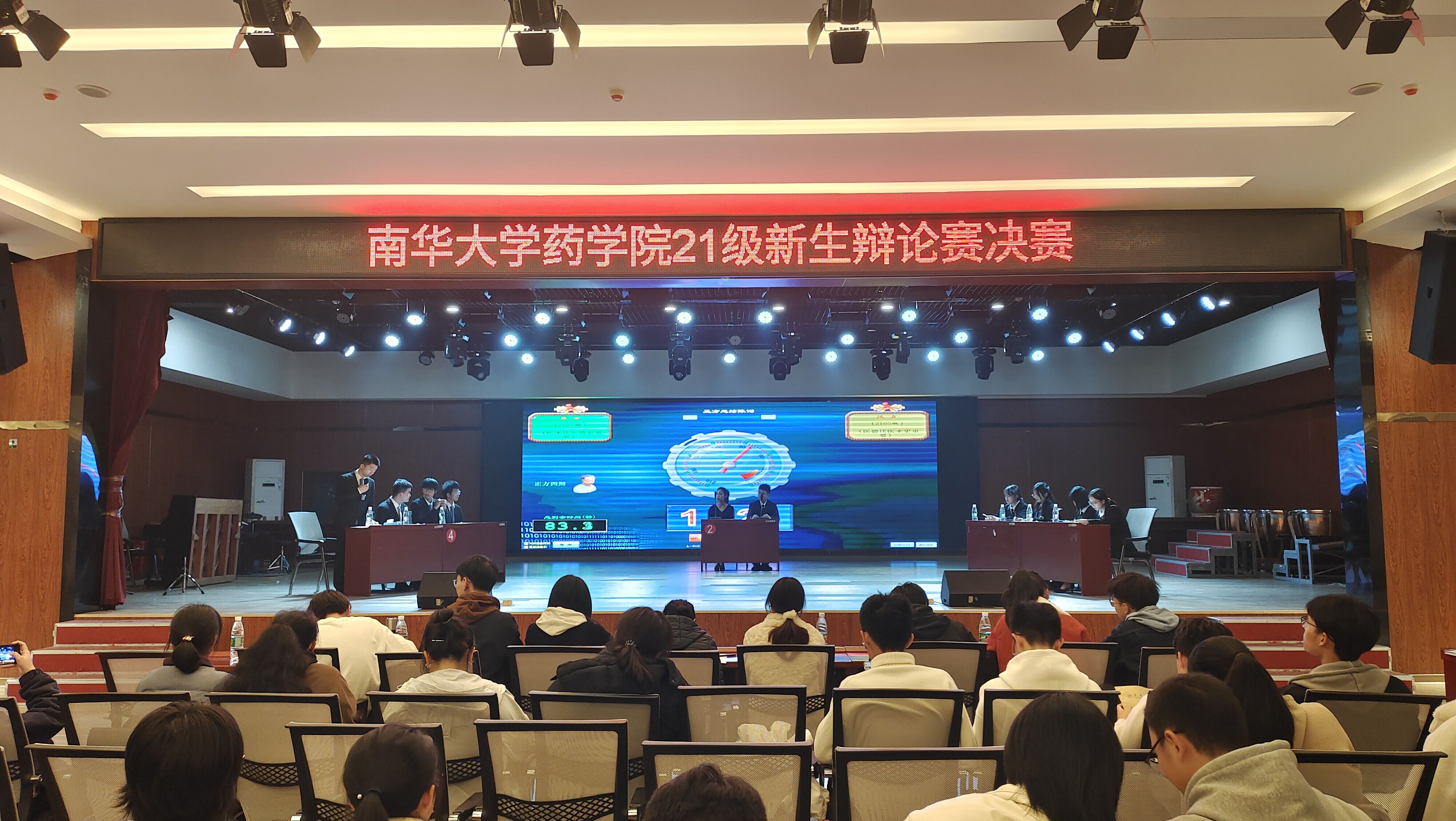 本次决赛共分为上下两场。上半场为季军争夺战,由持“年轻人更应该乘风破浪”观点的正方2102班与持“年轻人更应该稳住别浪”观点的反方2106班展开辩论。双方围绕辩题展开了激烈的辩论,就辩题中乘风破浪与稳准别浪的定义展开了激烈的争夺,以良好的风范、出色的口才、敏捷的思维令场下观众为之折服,掌声不断。最终,反方2106班获得胜利,最佳辩手为正方四辩2102班彭纤云。