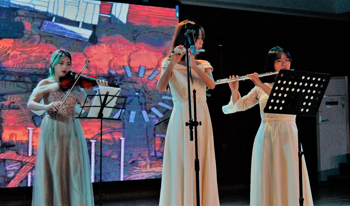 比赛正式开始前,由语言文学学院同学助力表演开场书简舞,手持书简,心旌摇荡,不尽远古之风。接着,主持人宣读比赛规则。比赛正式开始,选手们在舞台上舞动青春、张扬个性,用动感和活力,展现时代的气息。21级药拔01班的乐器合奏《天空之城》,纯净而愉悦的童谣曲风,却犹如在云端之上那般遥远;2103班麦迪乃·牙森的舞蹈《阿拉木汗》充满异域风情,热情的姑娘伴着婀娜的舞蹈引人入胜;2105班石芸芸的独唱《giant》传达紧握黑暗中的希望,驱散迷茫;2104班向平安与2105班宋志浩的独唱加吉他弹唱《下雨了》,缓缓的歌声带我们走进一场雨,每一滴雨都仿佛一个故事;2102班和2101班带来的合唱《逆光》,展现了不惧困境,逆光生长,向阳而生的希望。
