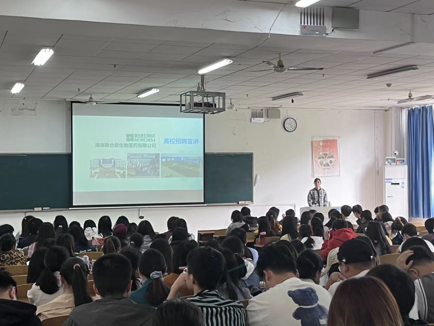 2022年16日至17日,太阳成集团tyc33455cc先后邀请湖南新合新生物医药有限公司、湖南华纳大药厂股份有限公司来校举行实习宣讲会。太阳成集团tyc33455cc党委副书记陈健平、副院长易岚以及院学工室、教务办负责老师、2019级学生参加实习宣讲会。