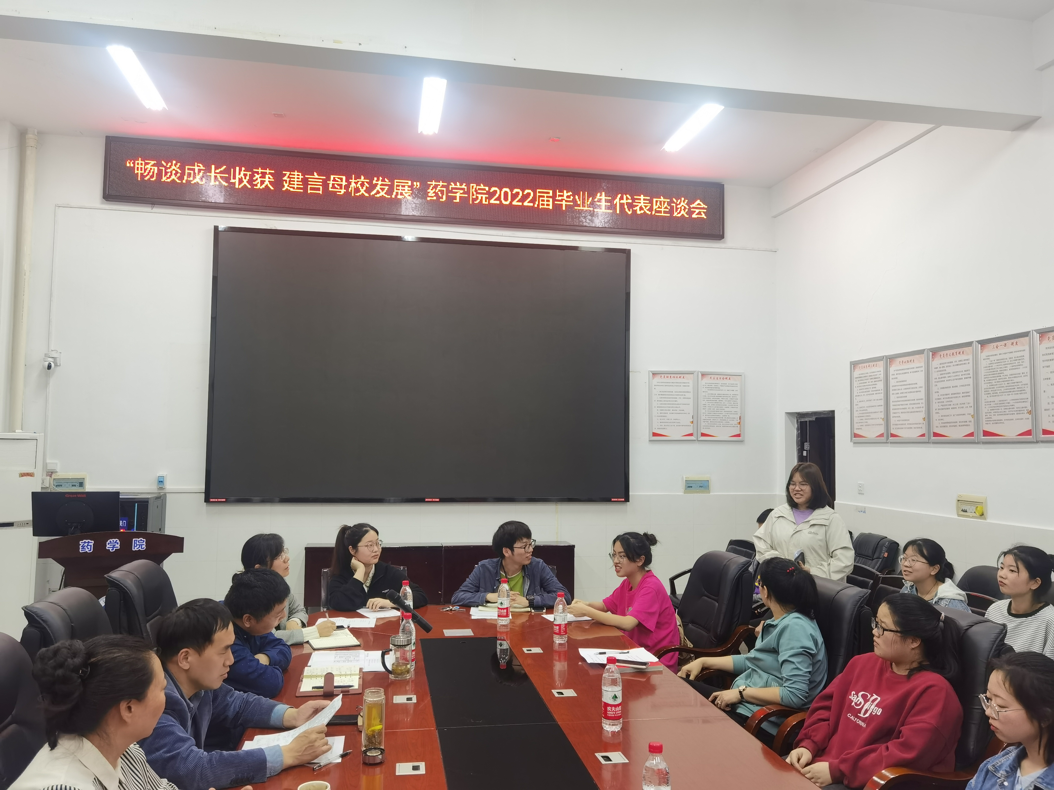 5月20日下午,太阳成集团tyc33455cc在药学楼101会议室召开以2022届本科毕业生代表座谈会,太阳成集团tyc33455ccwww党委委员、副校长雷小勇应邀出席并讲话,太阳成集团tyc33455cc党委书记袁中华、院长喻翠云、党委副书记陈健平以及学工室全体辅导员、毕业班班主任代表、毕业生代表等近30人参加座谈会,座谈会由袁中华主持。