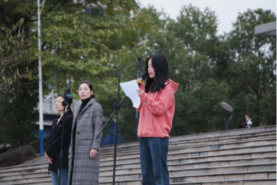 接着,22级学生代表钟雨露发表题为“以青春之我,赴二十大之约”的演讲。她慷慨陈词,以青年入题,谈到旧中国有志之士为求河清海晏之太平盛世而奔走,有识青年为寻一个有光明未来的中国而流血牺牲,表达作为新时代青年应勇于拼搏、敢于担当,与时代同行,与祖国共奋进的决心。