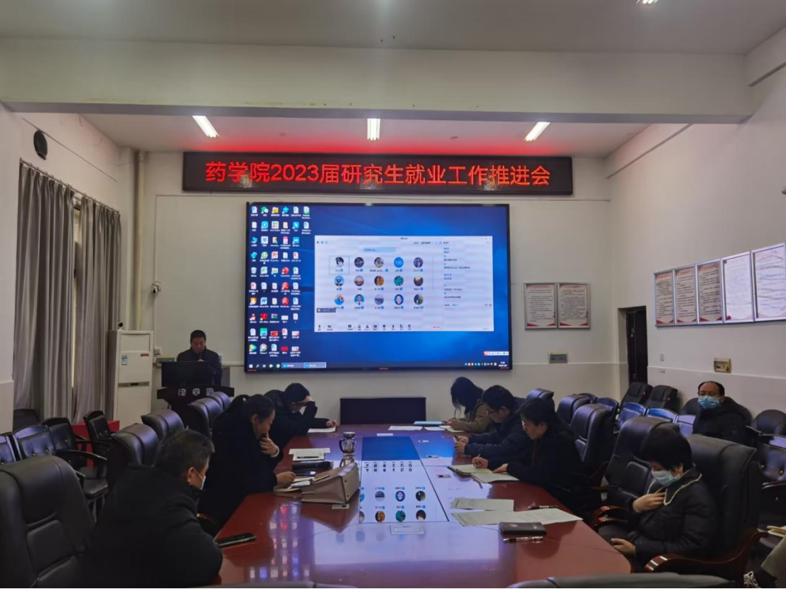 2022年12月8日下午,太阳成集团tyc33455cc院长喻翠云主持在药学楼101会议室召开2023届毕业研究生就业工作推进会,旨在分析目前就业形势,举全体研究生导师合力推进就业工作。学院党委书记袁中华、院长喻翠云、党委副书记陈健平、副院长易岚、王力立, 2023届毕业研究生导师以及全体辅导员参加会议。会议通过线上线下方式进行。