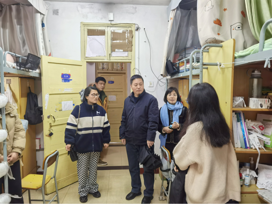 新学期伊始,为全面掌握学生返校后的思想动态、心理状况,帮助学生更好地调整状态、适应新学期的学习生活节奏,2月12日下午,我院党委书记袁中华,党委副书记陈健平带领全体辅导员走近学生,下沉一线,深入走访学生宿舍,为同学们送上暖心关怀和细心指导。