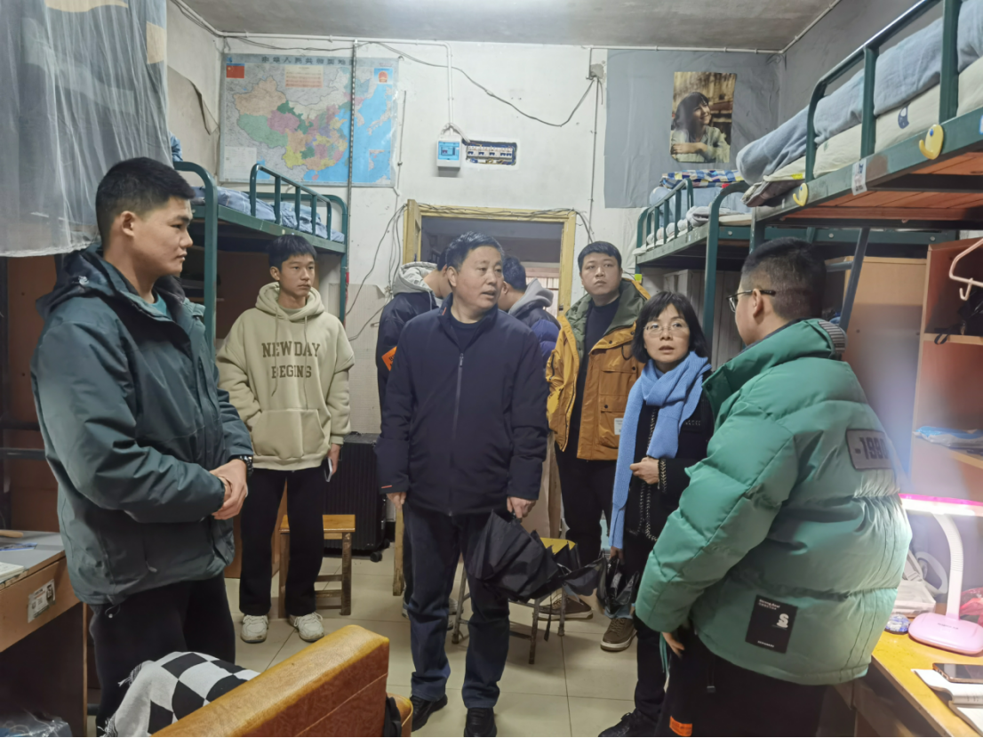 走访过程中,院领导与同学们进行了亲切交谈,详细了解同学们寒假期间的身体健康状况与学习生活情形,并询问同学们返校后的适应情况,希望同学们积极调整心态,保持一个良好的生活作息和精神风貌。同时叮嘱同学们要遵守宿舍规章制度,注意用电安全,妥善保管个人财物,做好卫生管理,保障宿舍整洁。