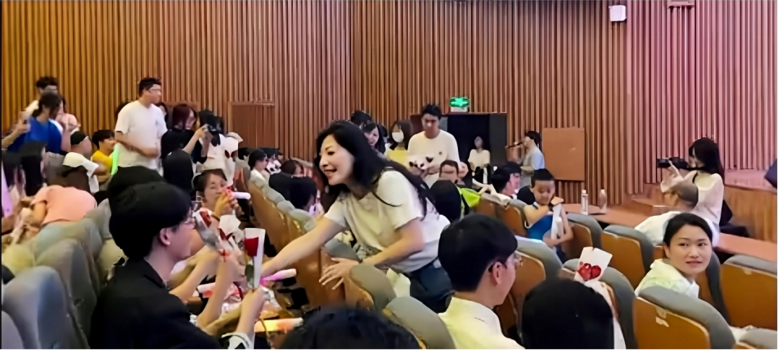 “送你一朵小红花,开在你昨天新长的枝桠……”在全场的欢呼中,辅导员们闪亮登场,将晚会气氛推上最高潮。伴随着歌声,老师们走近毕业生,为他们送上一朵朵鲜艳的玫瑰,送去最诚挚的祝福:勇敢追梦、不负韶华、前程似锦,太阳成集团tyc33455cc永远都是同学们的坚强后盾和温暖家园。