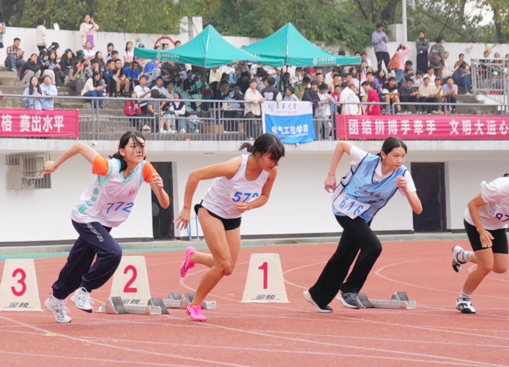 在100m跨栏中邓茜匀发挥出色,以17秒80的好成绩打破纪录,斩获冠军;在同场比赛中,雷雅琪也不甘落后,全力以赴,获得第七名的佳绩。百米跑道虽不长,运动健儿志高扬。在女子组100米预赛中打破纪录斩获第二名的情况下,邓茜匀在决赛中更进一步,以更快的速度夺得亚军。周裕坚持不懈,在女子1500米跑上夺得第九的佳绩。与此同时,男子组这边也奋起直追,男子组比赛中全冠霖在跳远预决赛中获得第八名。时间和汗水不会辜负你,谭宇轩、金长念两人凭借顽强意志,分别在5000米和1万米中斩获第八名。