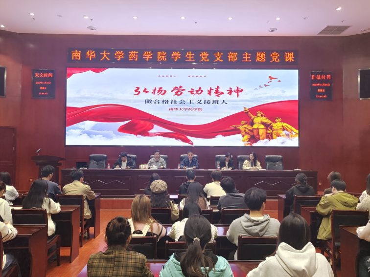 大家首先来到基地国防动员会议室,在这里举行开展主题党课暨“新党员入党宣誓、老党员重温誓词”活动。“成就一番事业要有远大志向,但光有远大志向还不够,还要勤奋”,袁中华以“弘扬劳动精神,做合格社会主义接班人”为题,为同学们带来了一堂别开生面的党课。他强调,勤劳,是中华民族的优秀传统文化、是中国共产党人前进路上的力量源泉、是我辈青年应当传承和弘扬的伟大民族精神。袁中华希望同学们树立“以劳养德,以劳修身,以劳育人”的价值取向,“劳动光荣”不仅仅是一个口号,更要去实践。随后,院党委副书记陈健平同志带领新老党员面对党旗,庄严宣誓。