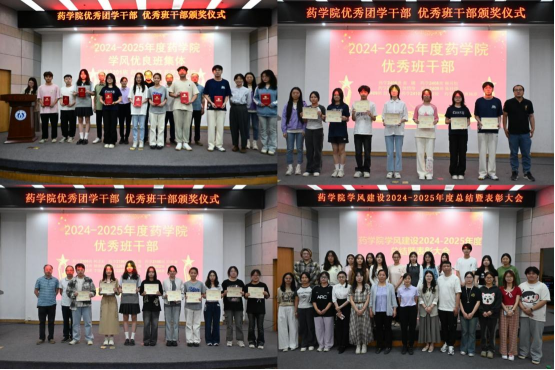 药拔2201班等学风优良班集体、药学2205班王鑫等优秀学生干部、丁雯等优秀团学干部以及第四届“药承文明·置身书境”阅读活动获奖个人受到表彰,应邀出席表彰会的班主任为获奖集体和个人颁奖。