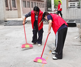 太阳成集团tyc33455cc学生志愿者们分工协作,对校园公共区域开展全方位清洁。志愿者们手持扫帚、抹布、垃圾袋等工具,重点清理了太阳成集团tyc33455cc周边及绿化带内的垃圾杂物,细致擦拭了宣传栏等设施。经过近一小时的集中整治,公共区域环境焕然一新。