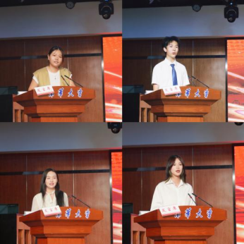 本科生新生代表袁健、研究生新生代表肖芷惠及本科生老生代表张苗依次登台发言。新生代表们讲述与南华药学的结缘故事,从学科魅力谈到家国情怀,郑重承诺将以青春朝气拥抱新挑战、以奋斗姿态开启新征程;老生代表张苗则以“过来人”的视角,用生动的学习实例和成长感悟分享大学进阶之道。