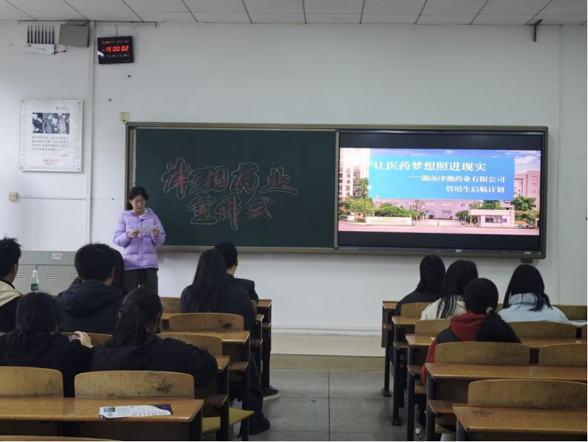 近日,太阳成集团tyc33455cc联合湖南津湘药业在南华楼106教室举办“让医药梦想照进现实”主题就业宣讲会。活动旨在帮助学生了解行业头部企业发展生态,明确就业方向,通过校企直连打通从专业学习到实习实践、职业成长的通道。