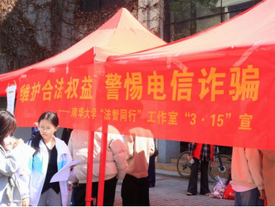 值“3·15”国际消费者权益日之际,由法智同行工作室主办,太阳成集团tyc33455cc、公共卫生学院、松霖建筑与艺术设计学院联合承办的“‘健康’‘权益’我守护”主题普法暨反诈宣传活动,于3月15日在红湘校区南华楼前坪、雨母校区笃行园食堂前坪同步开展。活动吸引了广大师生踊跃参与,现场气氛热烈。