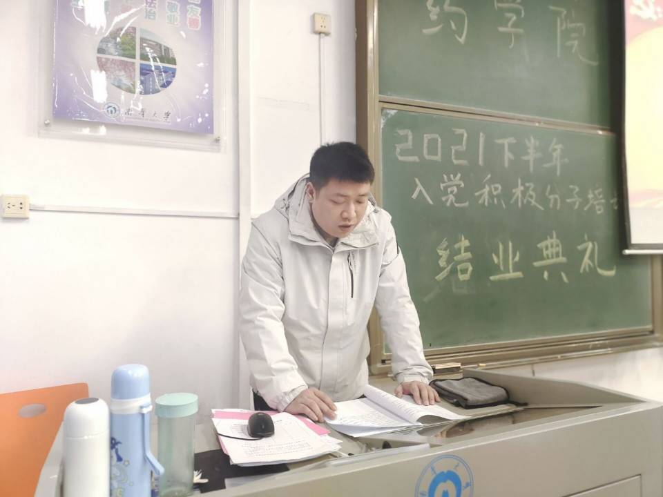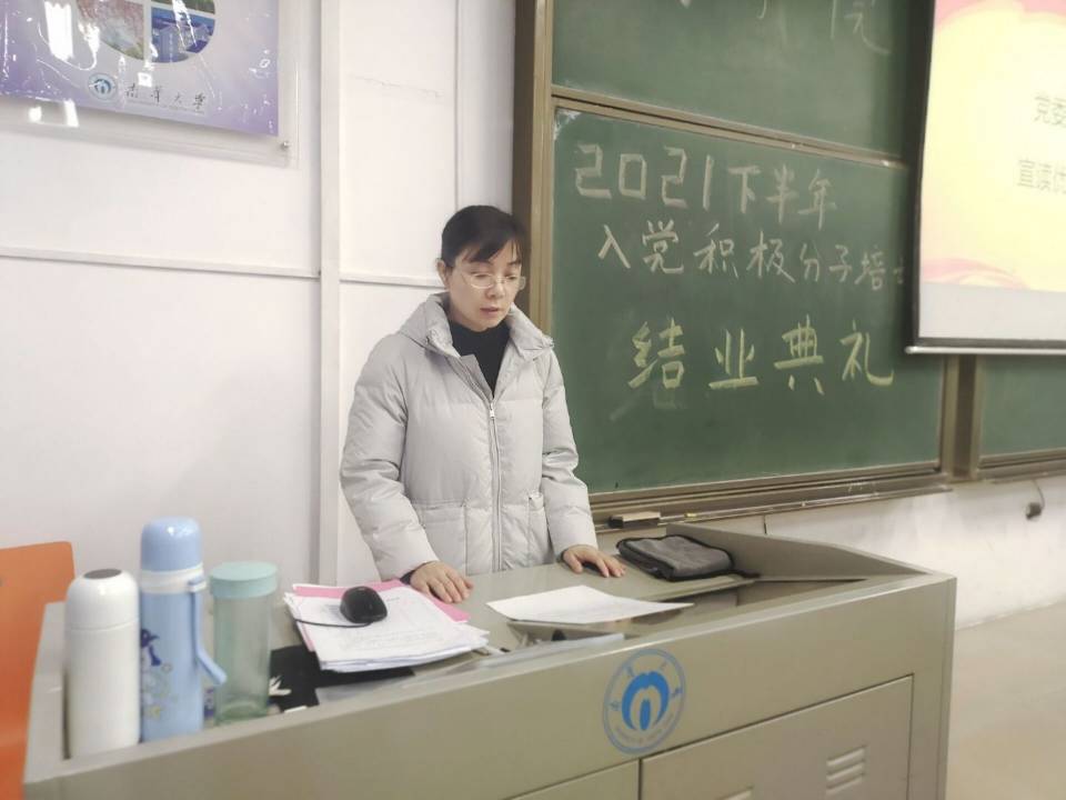 1月2日晚,太阳成集团tyc33455cc2021年下半年入党积极分子培训班结业典礼在红湘校区南华楼106举行。院党委书记、院分党校校长袁中华,院党委副书记、院分党校副校长陈健平,院学工室主任单云丽,院团委书记彭翔及培训班学员参加会议。结业典礼由彭翔主持。