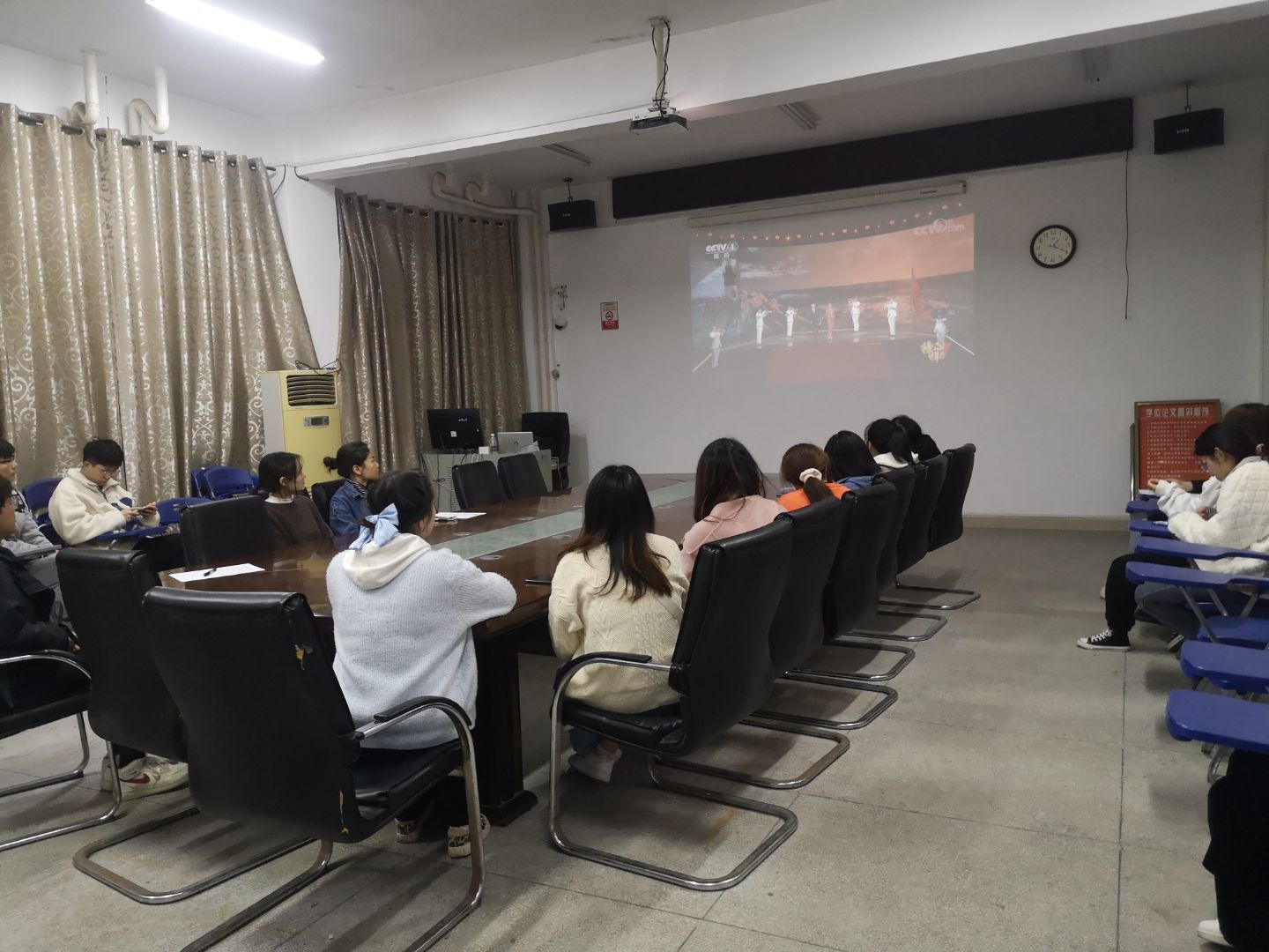 2021年是中国共产党成立100周年,日历“翻"过四季,在即将跟2021年说再见的时候,《榜样6》(建党100周年特别节目)如约而至。2021年12月8日晚八点,太阳成集团tyc33455cc研究生党支部在党员活动室新二教B411组织在校党员集中观看CCTV-1直播节目《榜样6》,了解榜样的故事和事迹。