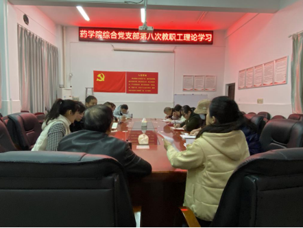 院教务办公室主任虞佳发言,当前学习十九届六中全会精神是最为重要的政治任务,我们要准确把握十九届六中全会精神的“源”和“流”,进一步领悟和深刻把握“3个理论飞跃”、“4个历史阶段”、“4个庄严宣告”,以及“10个坚持”的历史经验。作为学院教学管理窗口,要牢牢把握“三全育人”的基本要求,结合新形势新时代新任务,在做好基础服务工作的同时进一步推进教育教学改革,深化人才培养和教学方式改革,为培养懂医精药的复合型人才而奋斗!
