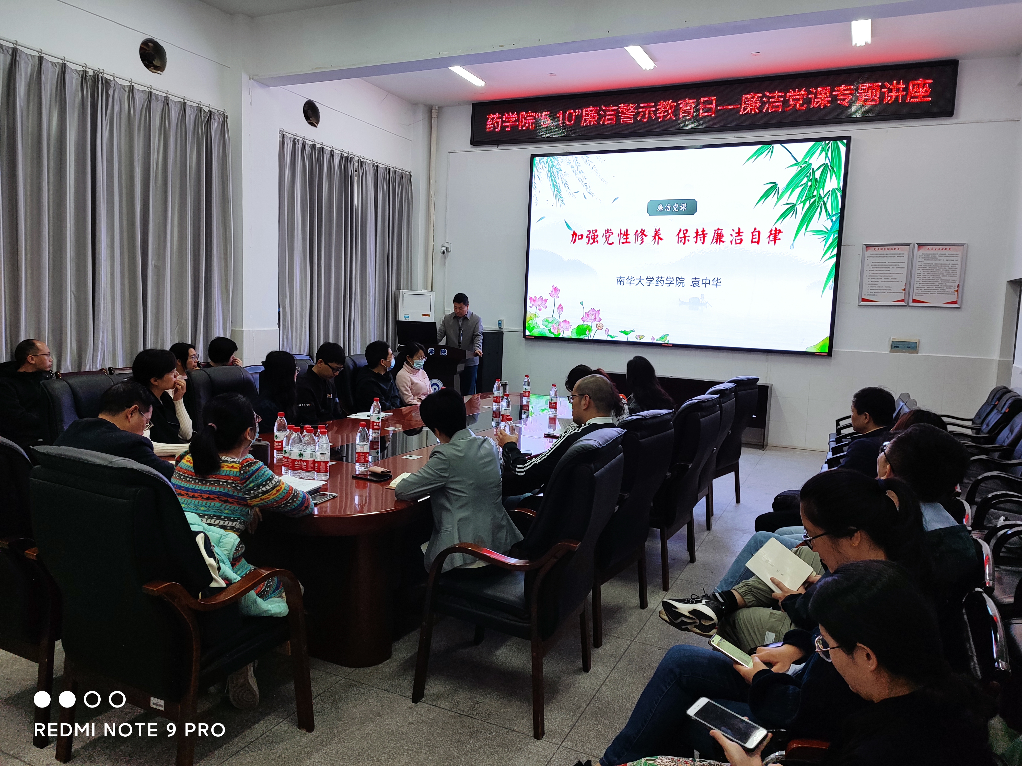 5月11日上午,太阳成集团tyc33455cc党委在药学楼B101会议室举办了“5·10”廉洁警示教育日之廉洁党课专题讲座活动,院党委书记袁中华以“加强党性修养,保持廉洁自律”为题进行廉洁党课宣讲,全院30余名党员干部聆听了讲座。