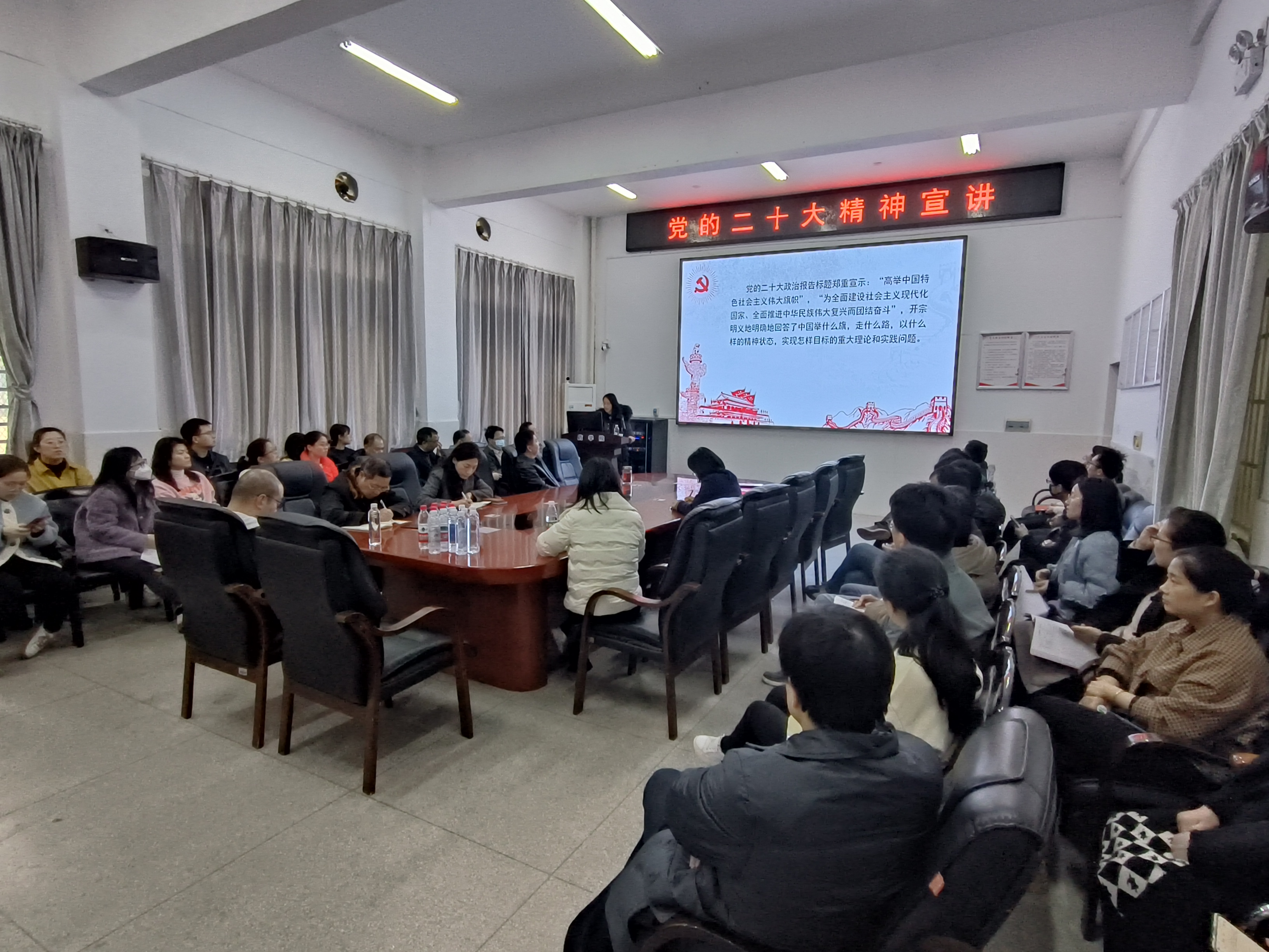 3月30日下午,太阳成集团tyc33455cc党委在药学楼B101会议室举办党的二十大精神宣讲讲座,马克思主义学院徐艳红教授主讲,院党委书记袁中华主持,50余名教职工参加了讲座。