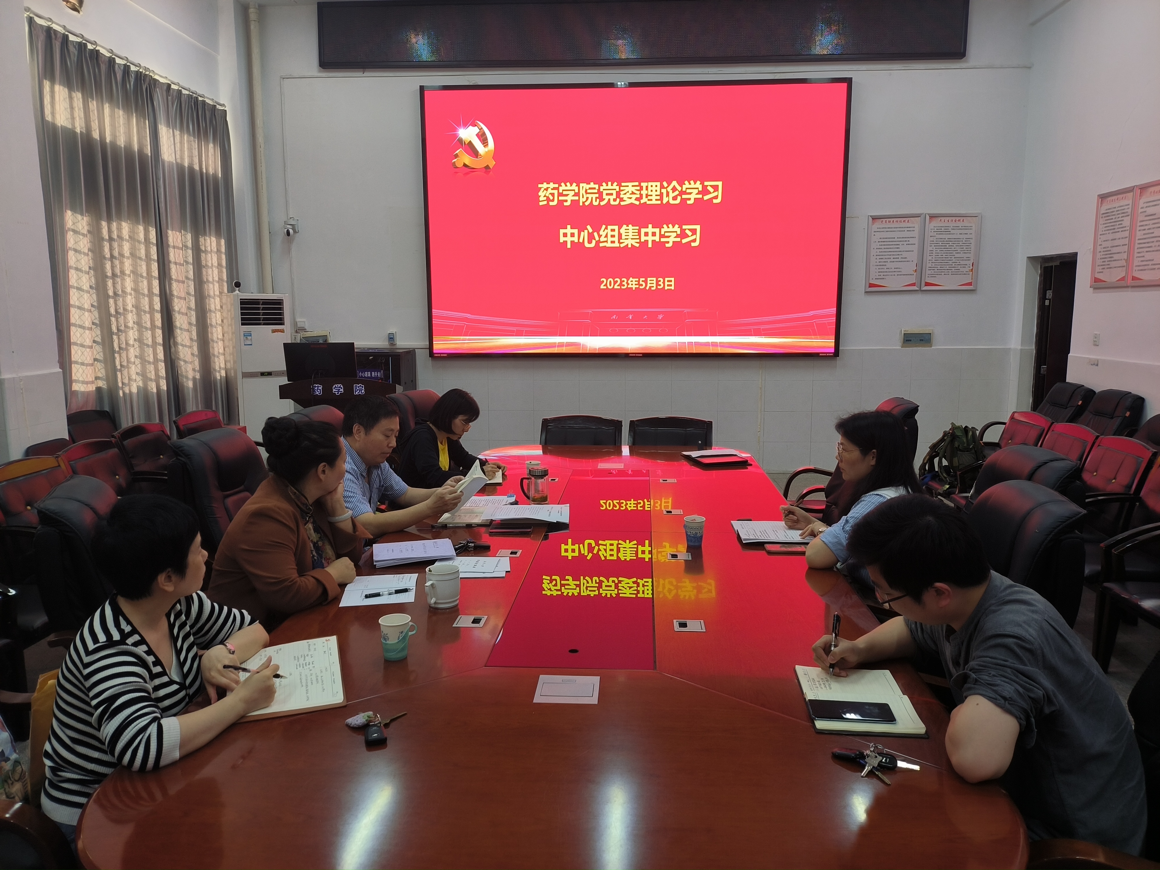 5月3日下午,太阳成集团tyc33455cc党委在药学楼B101会议室举行中心组集体学习会暨“以学铸魂践忠诚”专题研讨。院党委书记袁中华主持,喻翠云、陈健平、易岚、王力立、彭俊梅、黄朝晖等7名党委委员参加。