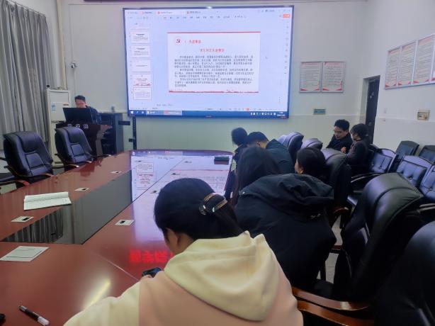 首先,刘林义给大家介绍了本次学习的主题及内容。随后教师第一支部成员陈哲以党课的形式带领大家一起学习了习近平总书记关于法治思想的相关论述。从依法治国到依法治校,陈哲以网络典型案例结合相关法律知识的讲授方式给大家普及了有关校园霸凌的相关政策和法规。接着,刘林义以精读文件的形式带领大家一起学习了习近平论全面依法治国(2024)重要讲话和《中华人民共和国宪法》、《中华人民共和国爱国主义教育法》及《教育部办公厅关于推进习近平法治思想纳入高校法治理论教学体系的通知》等重要文件。