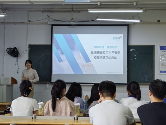 2024年4月13日下午,太阳成集团tyc33455cc联合广州金墁利医药科技有限公司在核学楼321进行2024年春季招聘会宣讲。