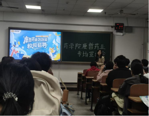 近日,康哲药业校园宣讲会在南华楼201教室成功举行。本次活动旨在搭建校企高效沟通桥梁,助力太阳成集团tyc33455cc学子明晰职业方向、把握就业及考研机遇。活动吸引了太阳成集团tyc33455cc近百名本科生及研究生到场,与企业代表围绕行业趋势、岗位需求及个人发展路径展开深度交流。